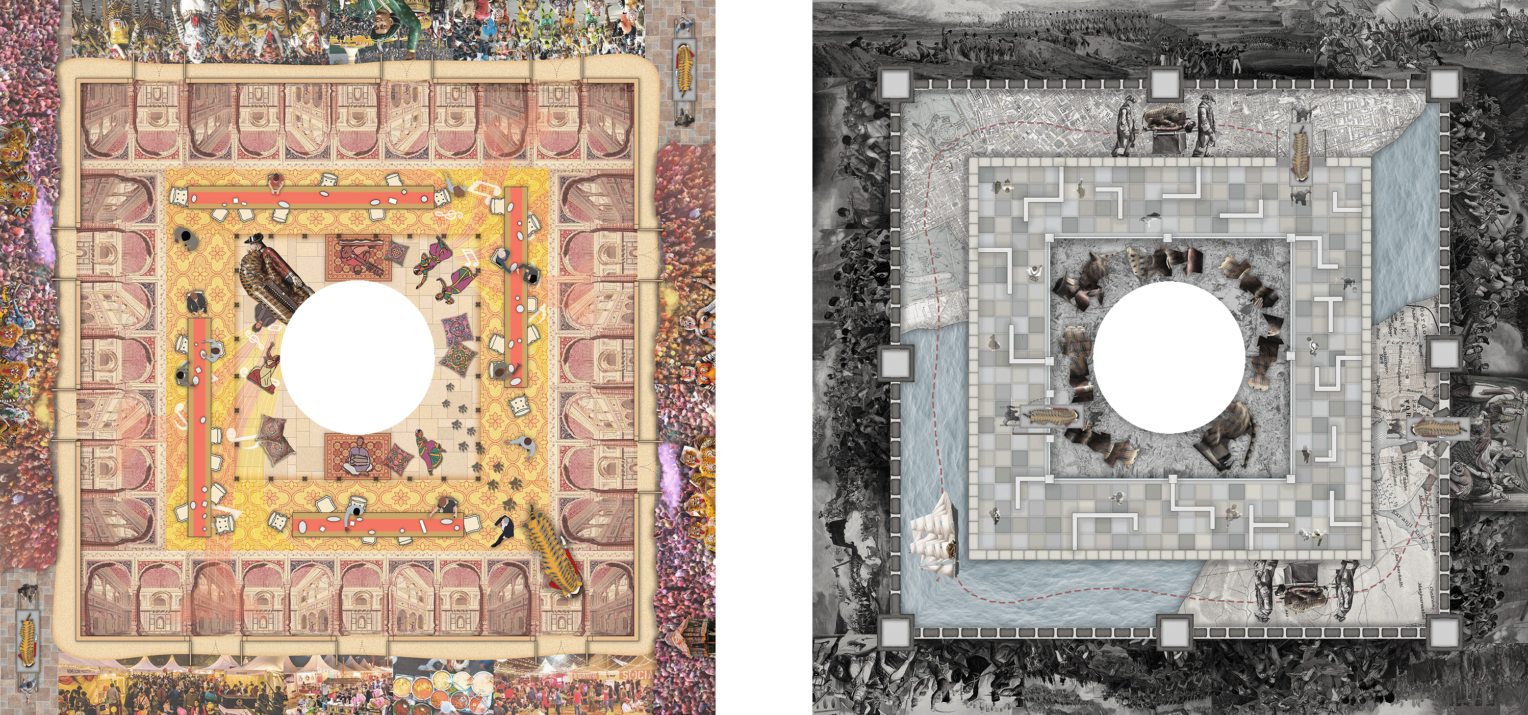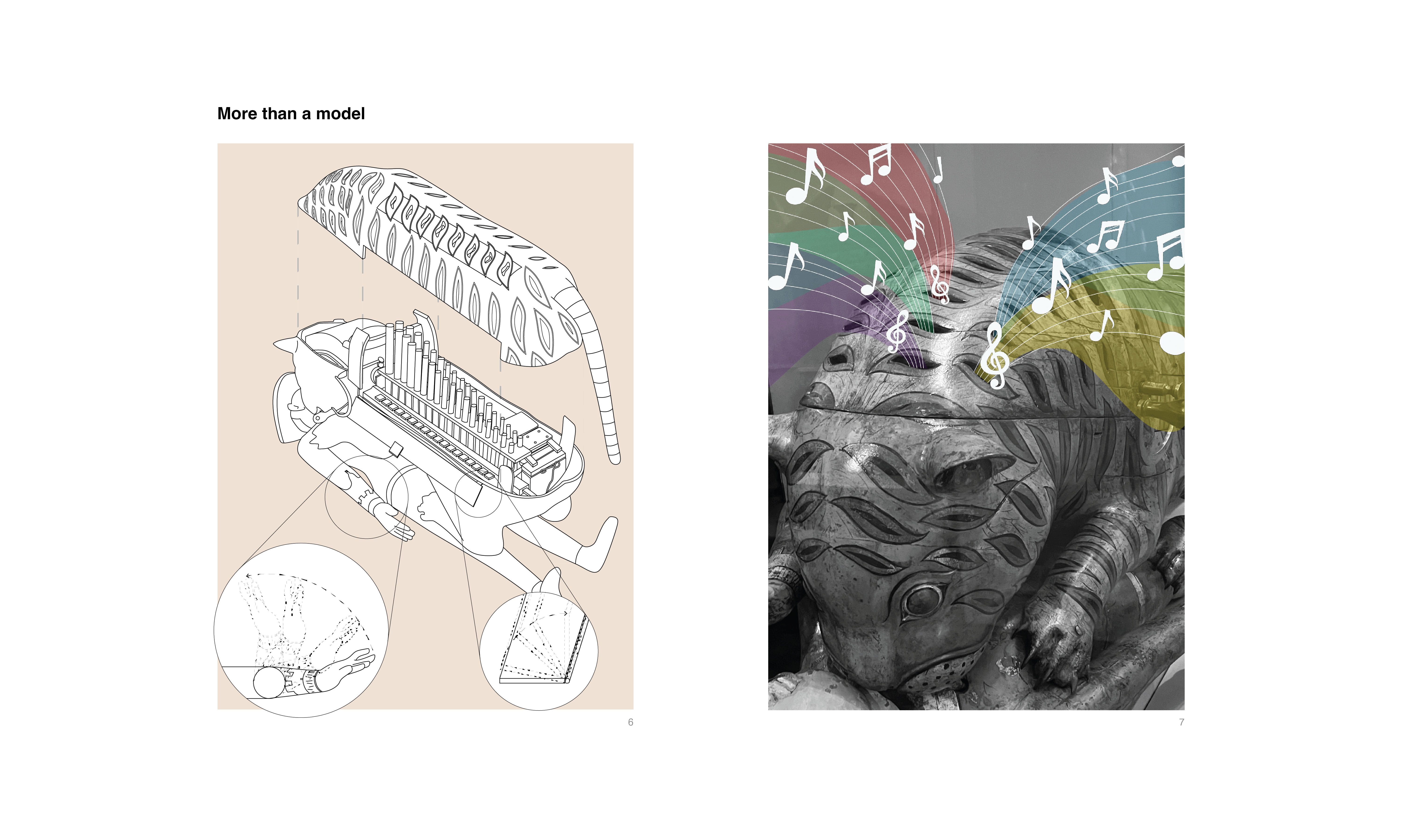 As part of the 2024 AA Summer School unit Carpets, this project reexamined Tipu’s Tiger — an 18th-century anti-colonial automaton commissioned by Tipu Sultan and now housed at the Victoria and Albert Museum. Through historical research and speculative reconstruction, the work highlighted the instrument’s layered symbolism as both a mechanical artwork and a political artifact of resistance against the British East India Company. Using narrative timelines, sectional analysis, and spatial design proposals, the project proposed an alternative display strategy — one that reflects the complexity of the object’s history and its contested presence in the museum. The final design used the carpet as a storytelling device, inviting viewers to confront themes of colonial violence, erasure, and symbolic reactivation.